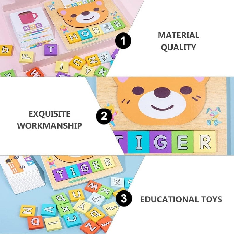Crafted from high-quality wood, the puzzle pieces are smooth, durable, and safe for children to use. The colorful letters and cards attract children's attention, making it easier for them to memorize letters and words. This set is ideal for preschoolers and early learners, helping them develop language skills through play.